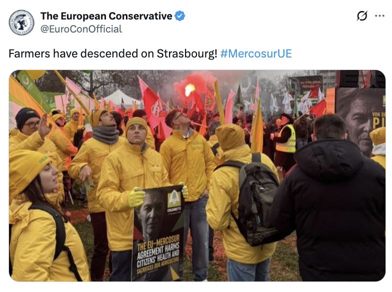 Patriots for Europe leader Kinga Gál blasted von der Leyen’s absence as “contempt” for the thousands of European farmers protesting what they see as ill-advised trade liberalization that threatens local producers.